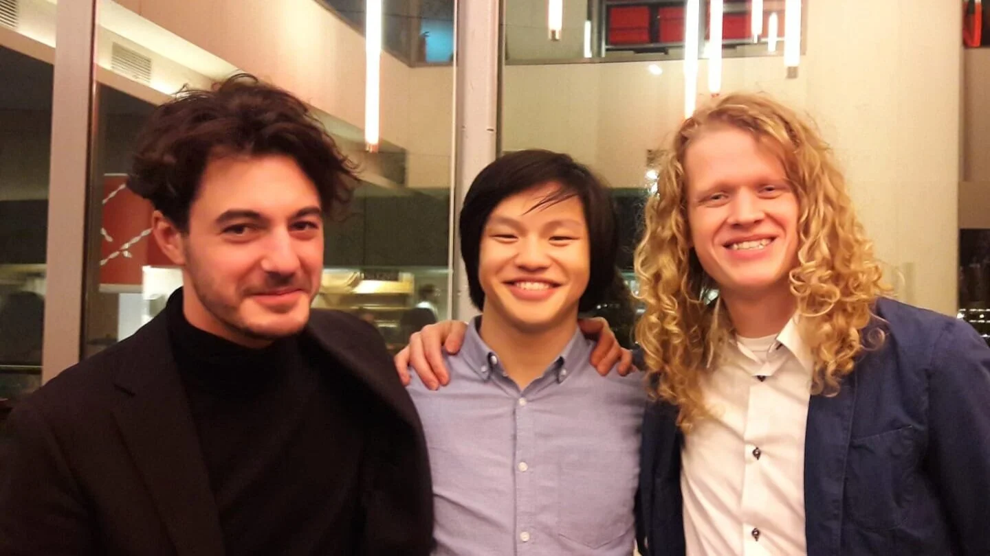Gabriel Bianco, Jun Bai (Den Toom Luthier owner) after the student concert. Amsterdam, The Netherlands.